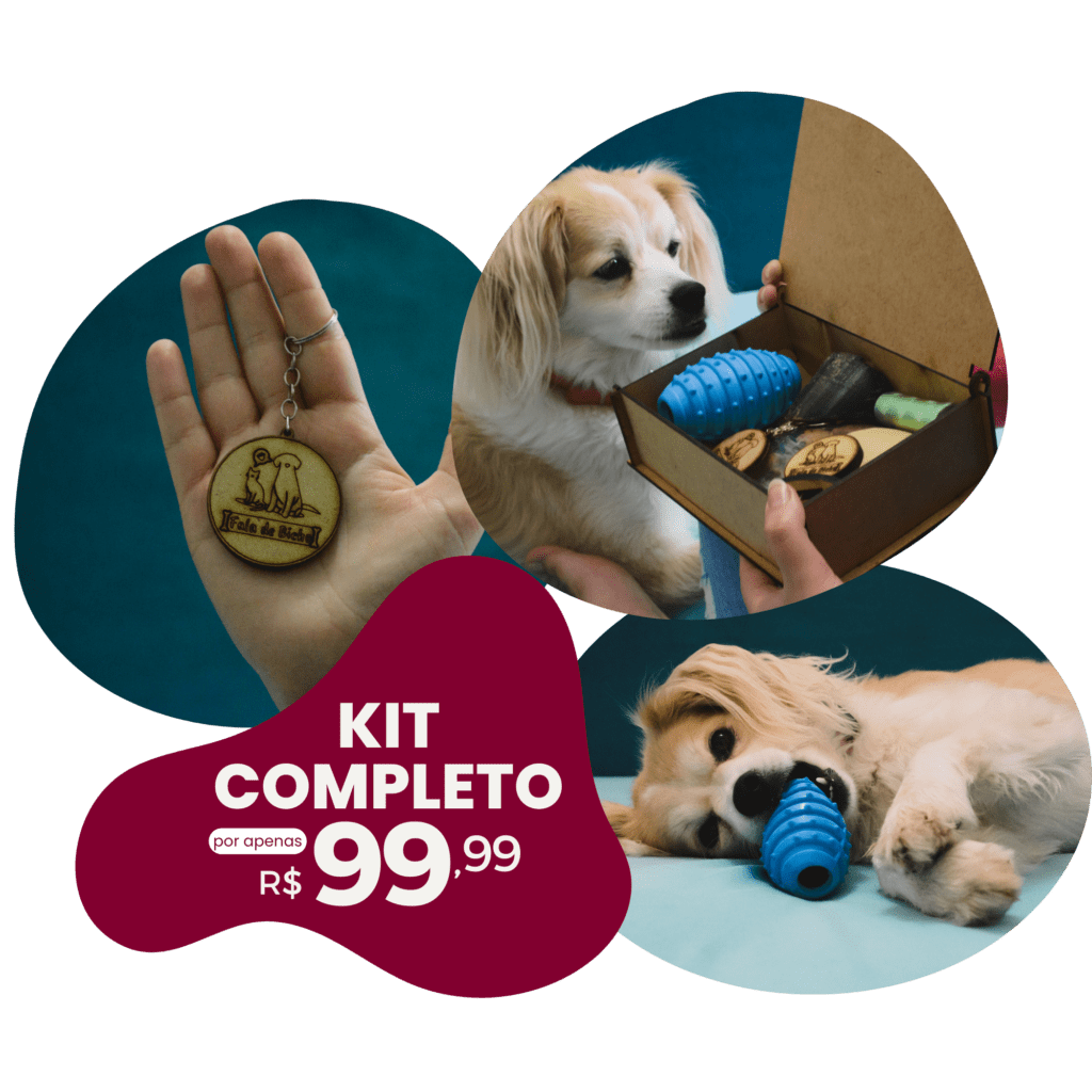O Kit Fala de Bicho vem com itens que auxiliam no dia a dia, na redução de ANSIEDADE DE SEPARAÇÃO e DESTRUIÇÃO DE MÓVEIS E OBJETOS. Melhorando o enriquecimento ambiental, reduzindo o acúmulo de energia do seu bichinho e auxiliando na convivência dele com outros bichinhos, amigos, vizinhos e familiares!